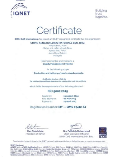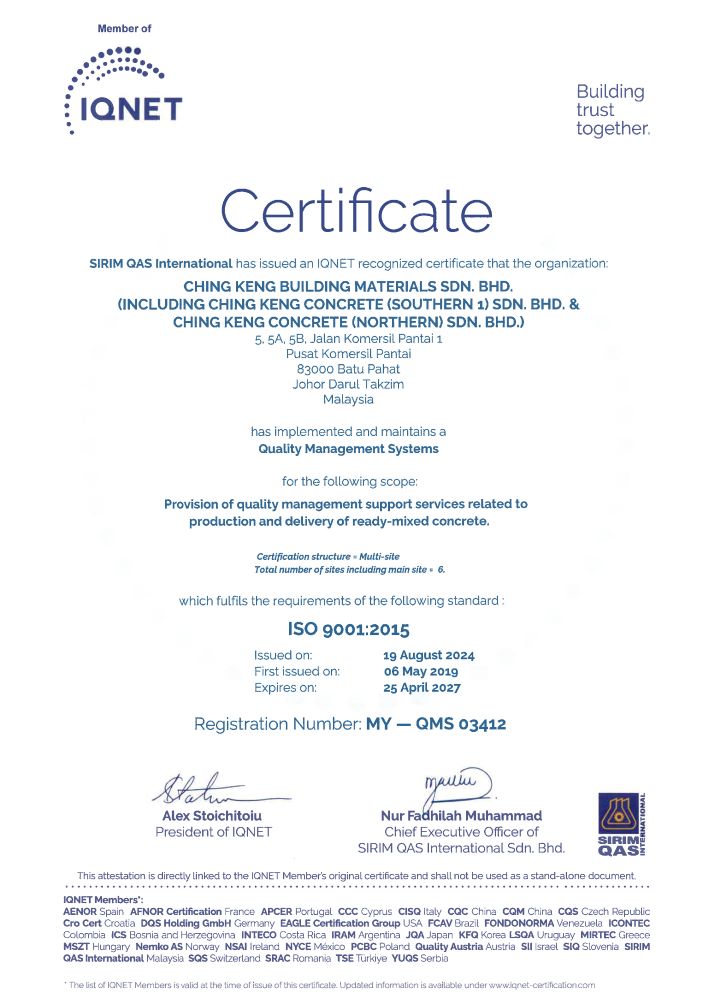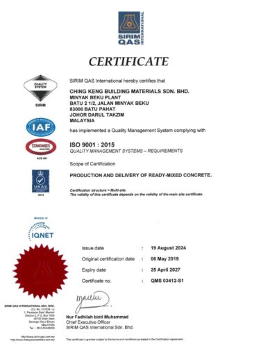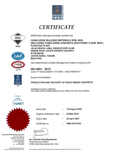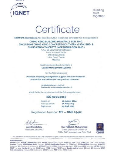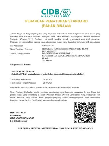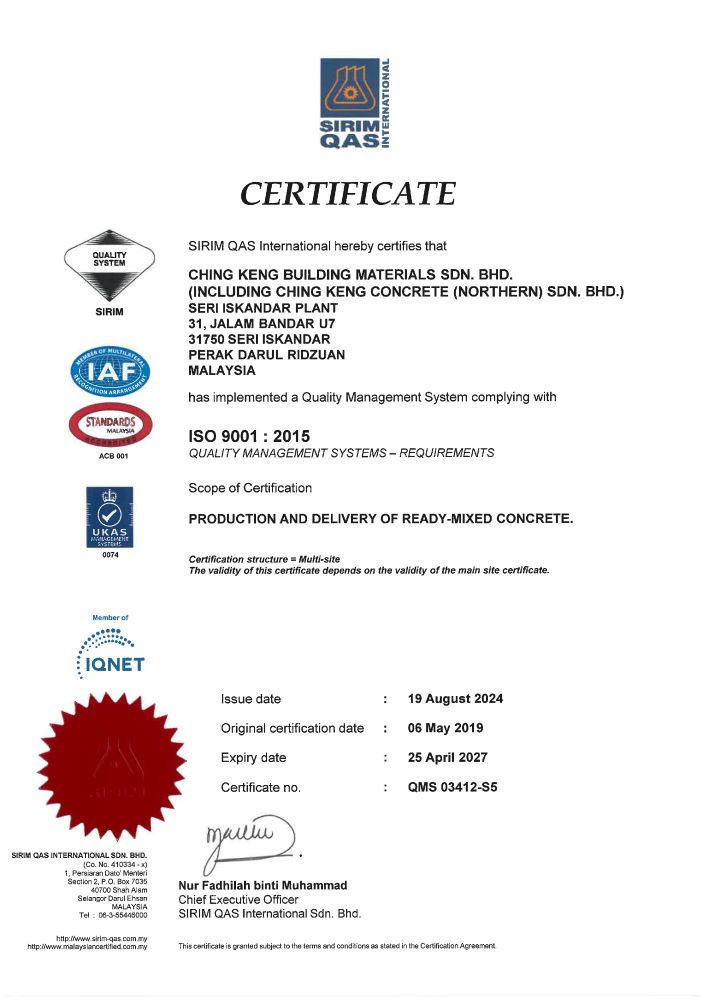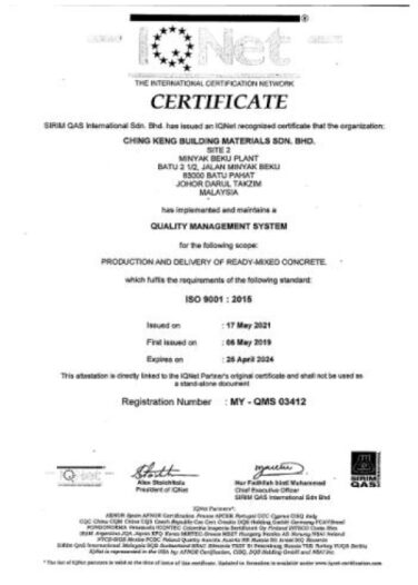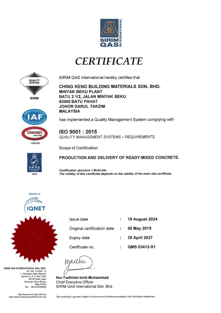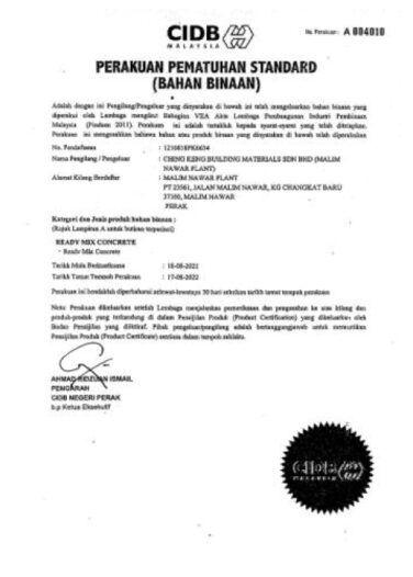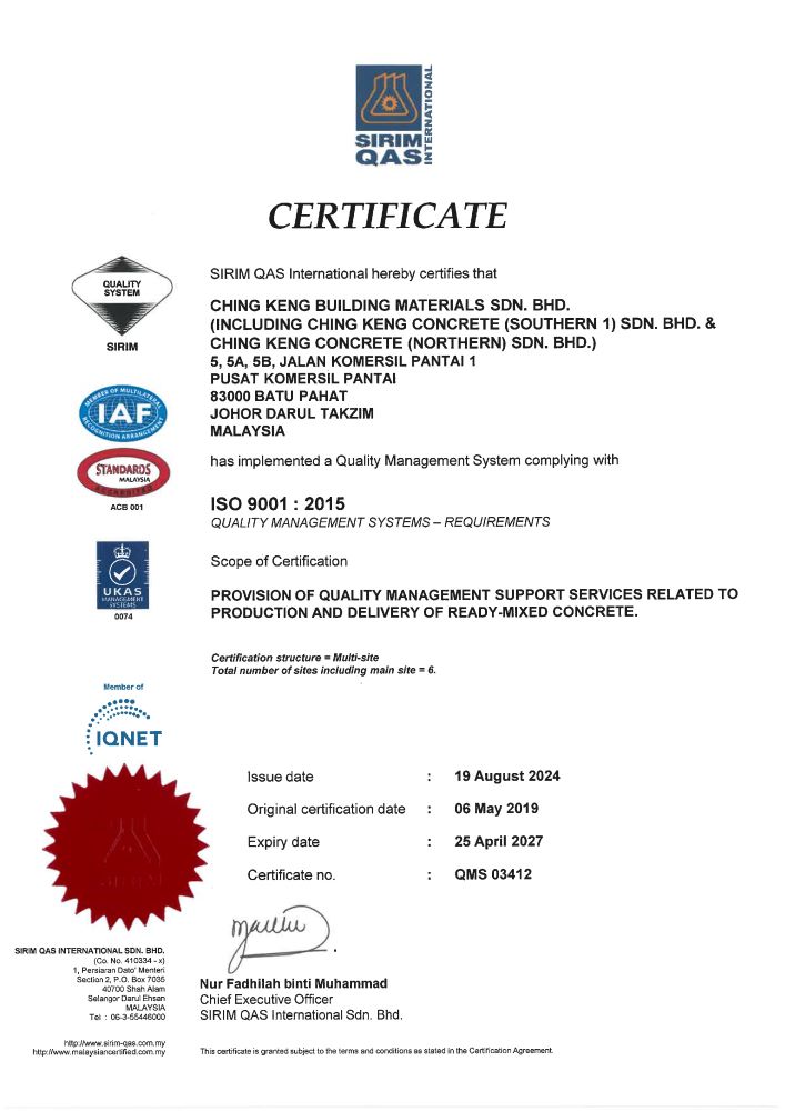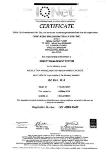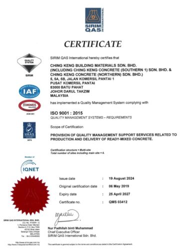 Ching Keng Building Materials Sdn Bhd is family owned and start to operate as ready mixed concrete manufacturer and supplier serving Malaysia construction industries since 1995. Ching Keng continues to conduct business based on the principles responsible for its conception.