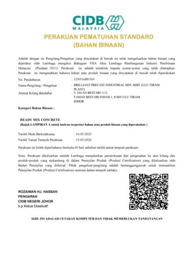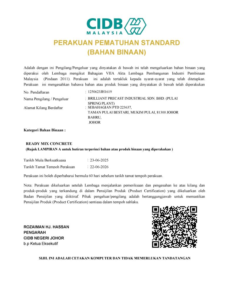 To expand our operational reach, our subsidiary companies were incorporated: Brilliant Precast Industrial Sdn Bhd in 25th April 2018, Ching Keng Concrete (Central) Sdn Bhd in 21st May 2018, and both Ching Keng Concrete (Southern 1) Sdn Bhd and Ching Keng Concrete (Northern) Sdn Bhd in 11th October 2023.